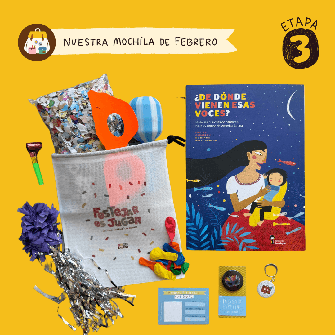 Cada valija incluye 1 libro, 1 juego, un pin insignia temático coleccionable (o títere de dedo coleccionable, en el caso del Ajuar Literario – Etapa 0) y sorpresas