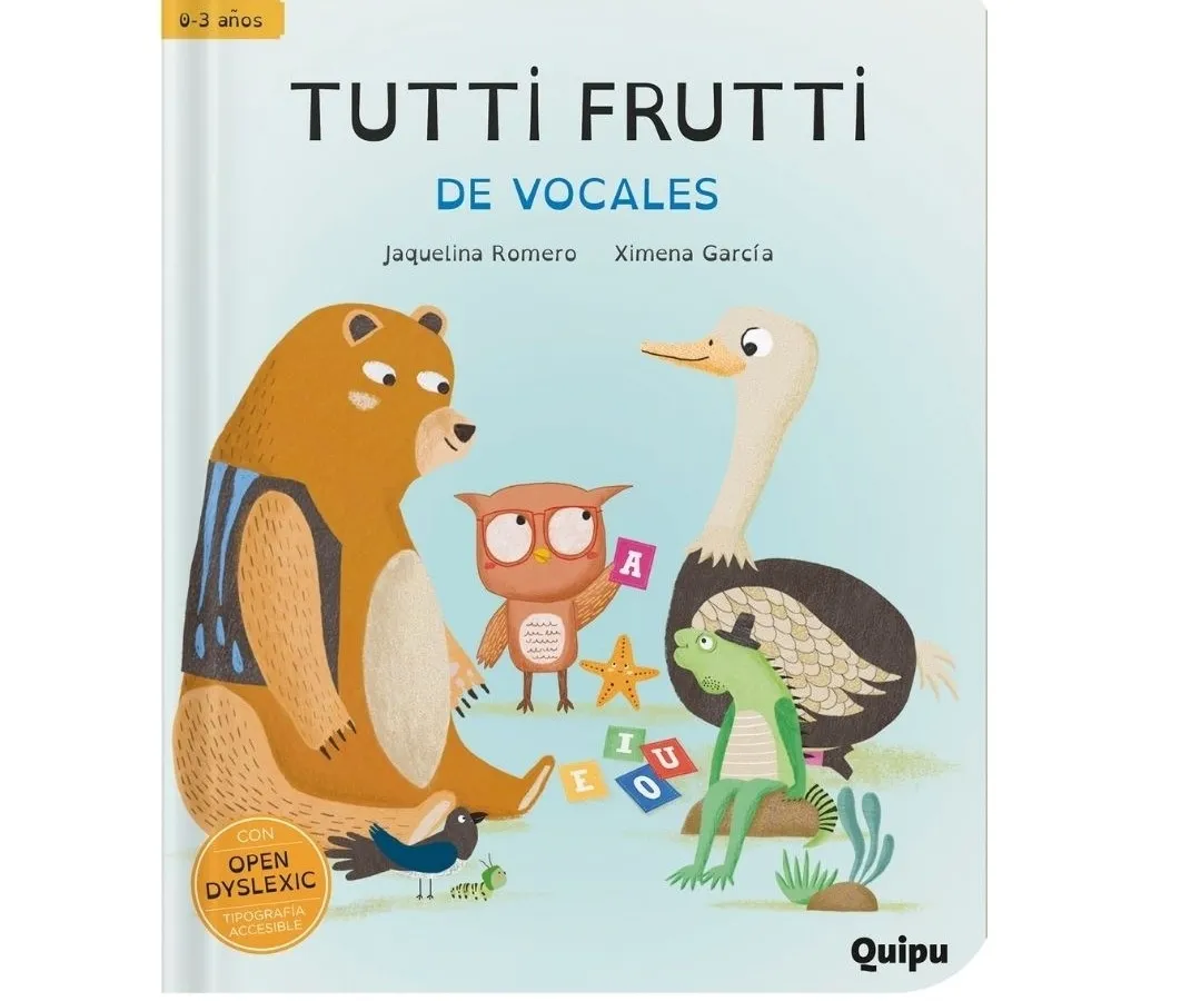 Aprender las vocales es divertido, ¡pero más divertido es si jugamos un juego! La autora nos invita a un Tutti Frutti y a nombrar animales con cada una de las vocales. A ver, a ver, empecemos por la A